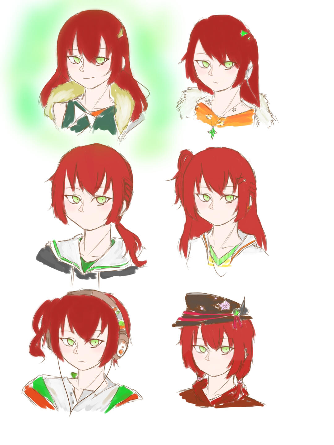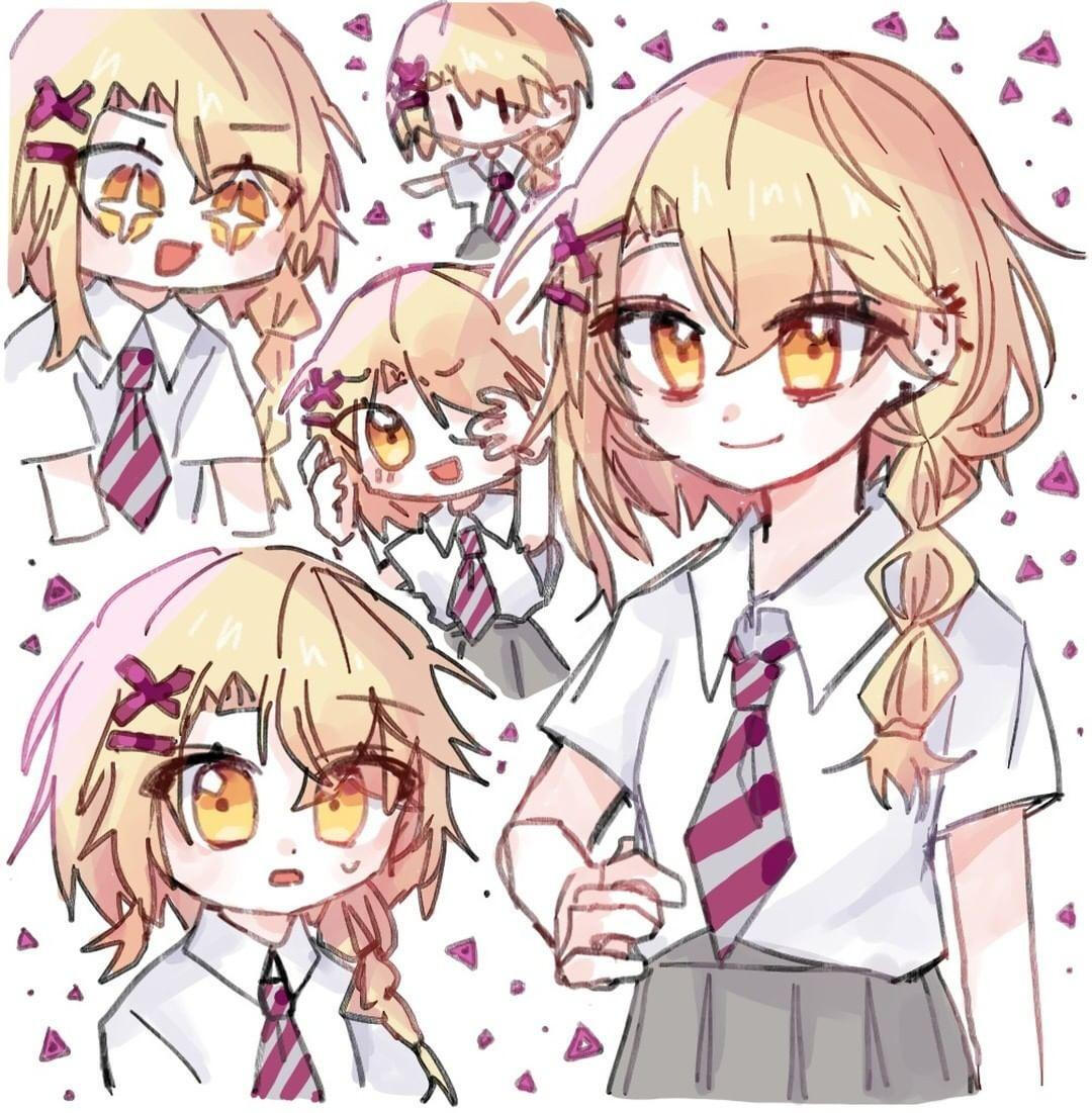 🖊特徵:下雙馬尾、齊瀏海、亂髮、雙呆毛、繃帶、ok繃、左青右橙指甲油