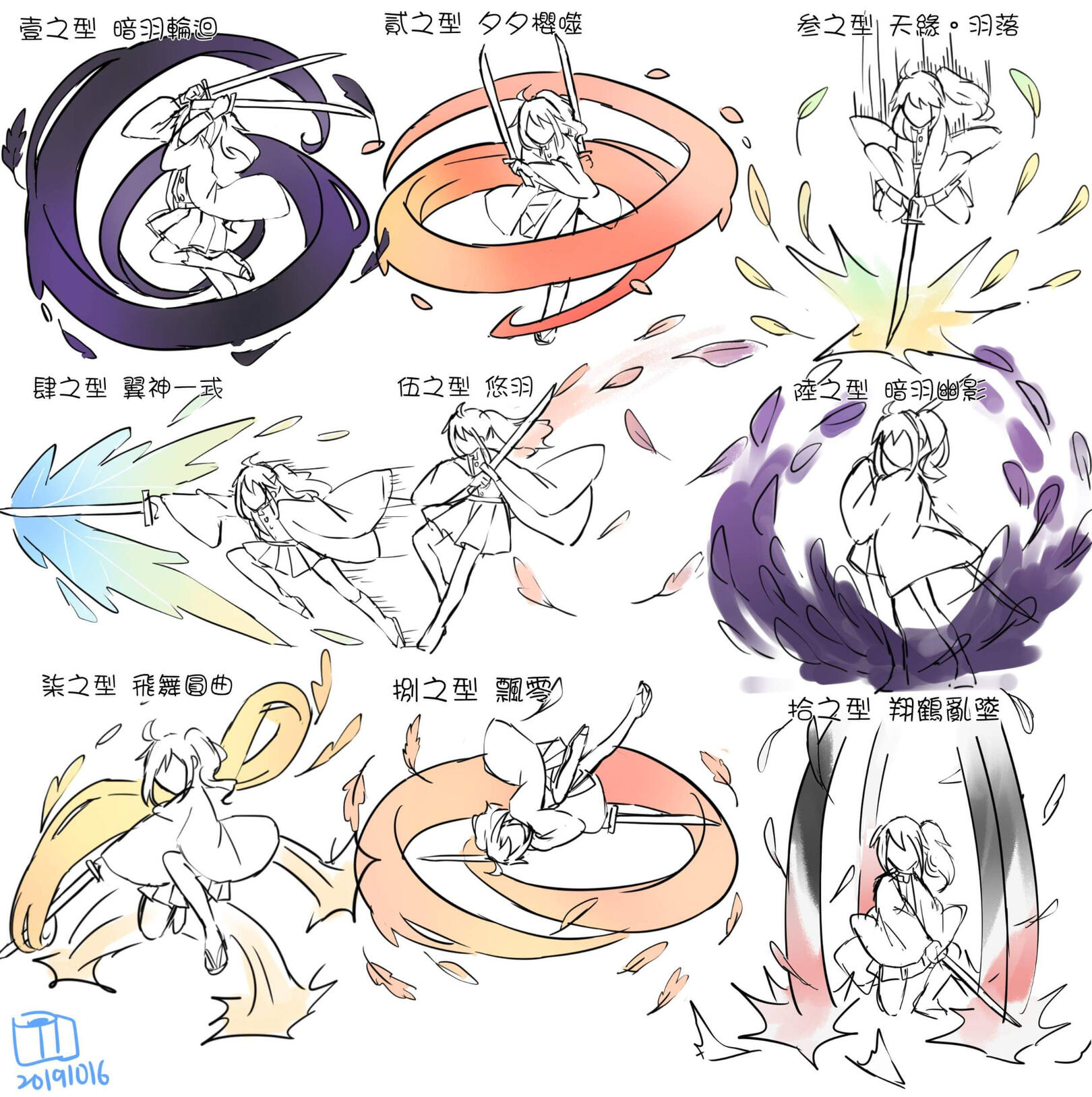 -將上半身和下半身以用力扭轉的狀態,隨著勢頭不斷湧出斬擊,使產生的漩渦變成銳利的羽刃。